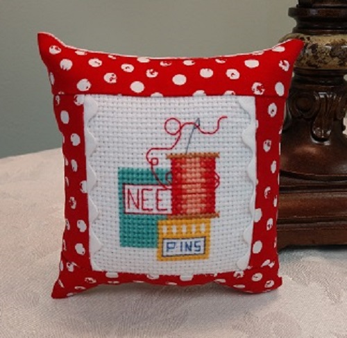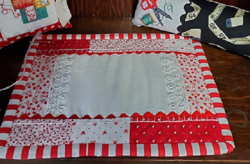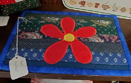 Small charm basket in soft, summery fabrics measuring 6 x 4 x 3 1/2 inches. Medium-size is also available. Machine wash in cold water.
