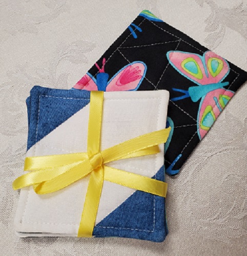 Set of 4 coasters. Auburn and white on one side & fall mum print on the other.  Machine wash cold.
