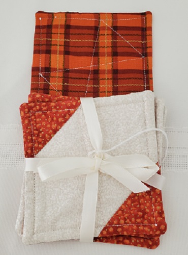 Set of 4 coasters.  White with red snowman print on one side & green snowman print on the other.  Machine wash cold.