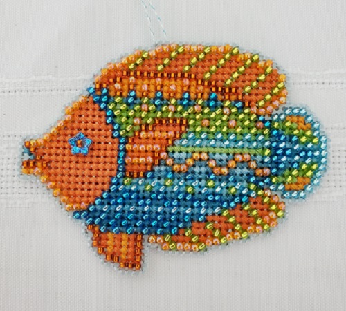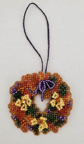 Cross-stitched and beaded magnet or ornament reminds us to give thanks. Measures 3 1/2 x 2 1/2 inches.