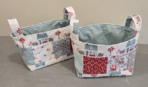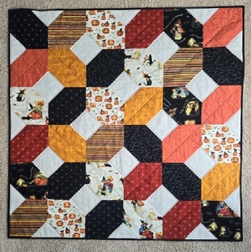 This runner is made with a black and cream hued fabric in a floral design.  It measures 42 1/2″ x 16″.  Machine wash in cold water.