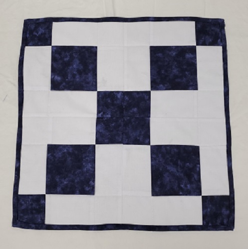 Navy and white table runner is 21″ x 8″. Table topper is also available.