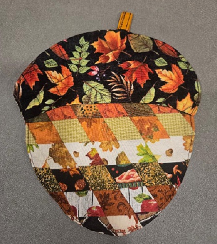 This table runner features six gnomes sporting stocking hats with buttons at the end of each. It measures 40″ x 14 1/2″ and is machine washable in cold water.